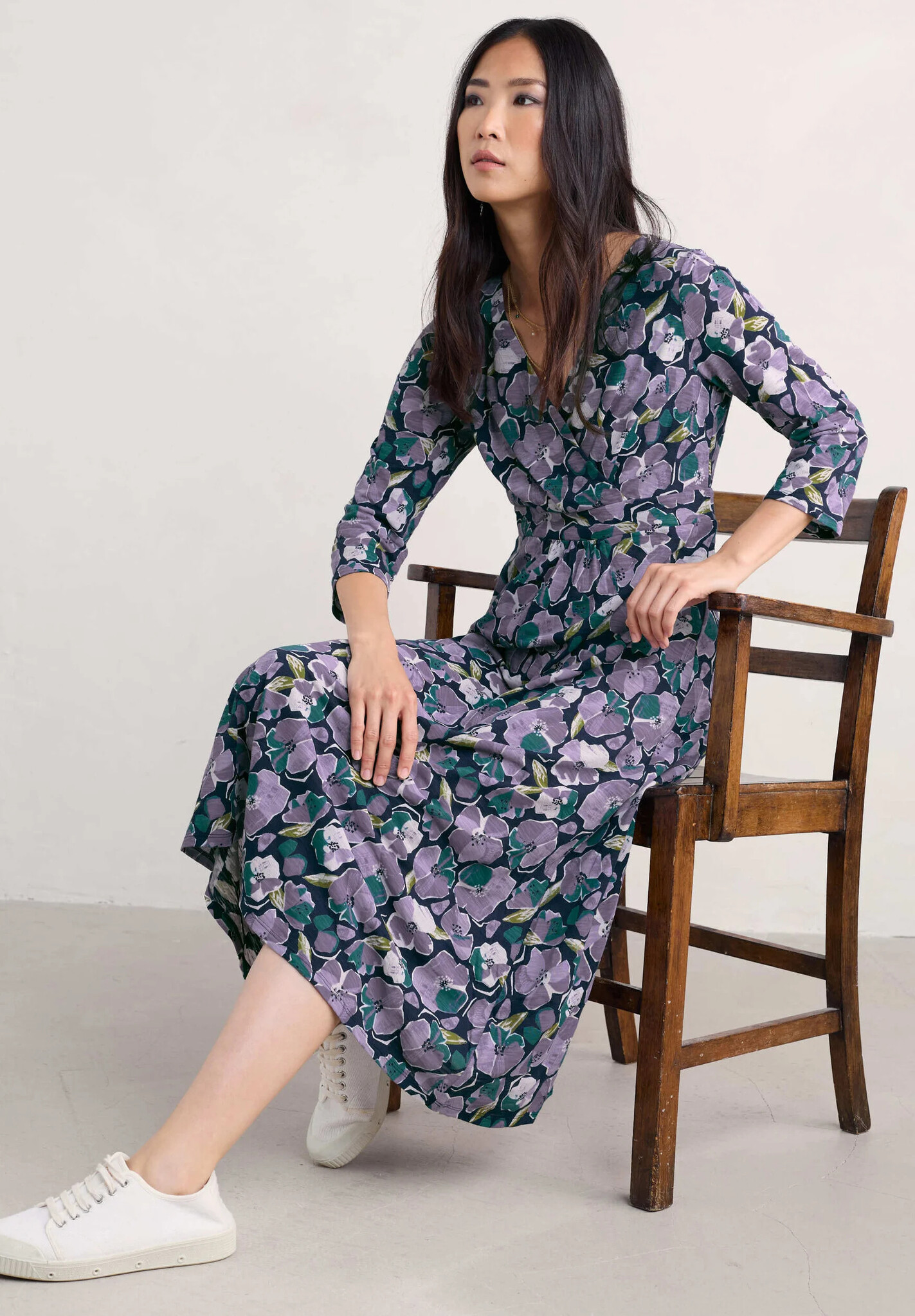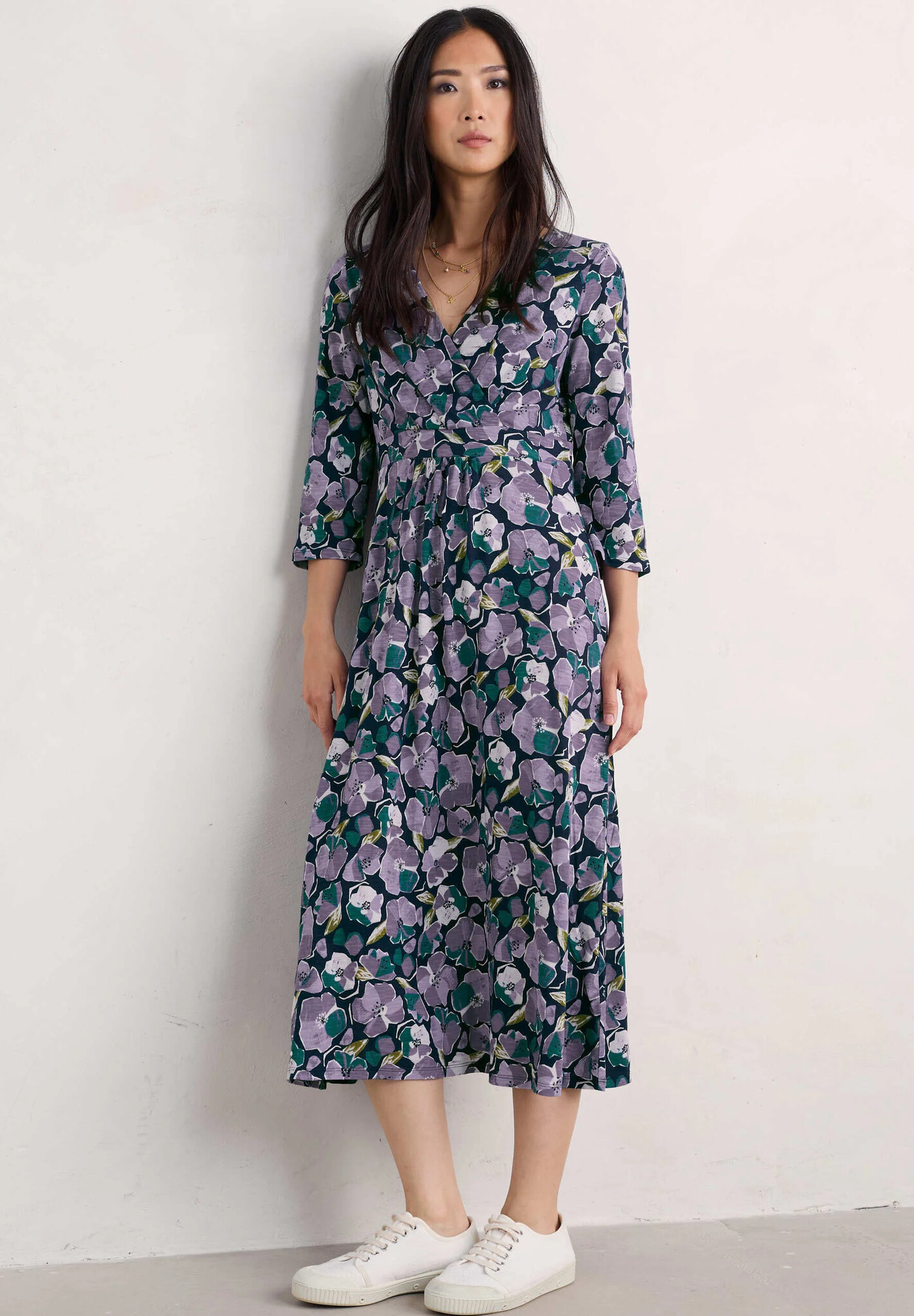 Seasalt Cornwall 3/4 chapelle dress Paper Helleborus Echium