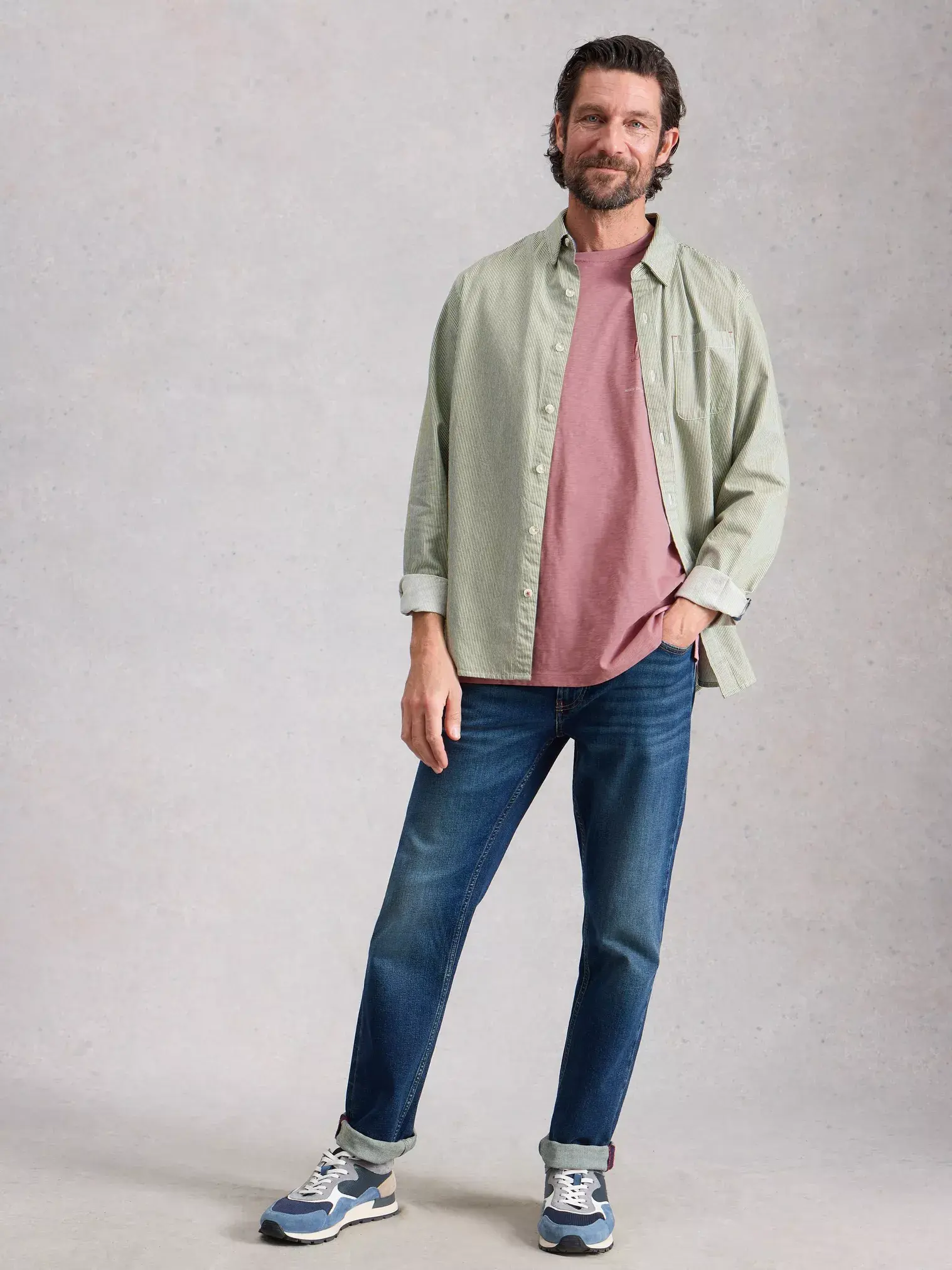 Het shirt is gemaakt van 100% katoen en voelt soepel en prettig aan op de huid. De regular fit zit comfortabel zonder strak te zijn. Met de ronde hals en korte mouwen is dit zo’n T-shirt dat je moeiteloos combineert: op een jeans, onder een overhemd of gewoon zo, op een relaxte dag.