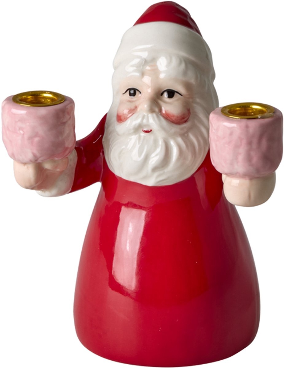 Kerstman kandelaar van Rice by Rice, keramiek, 12 cm hoog. Geschikt voor 2 kleine kaarsen. Vrolijk, sfeervol en perfect voor feestelijke winterdagen.