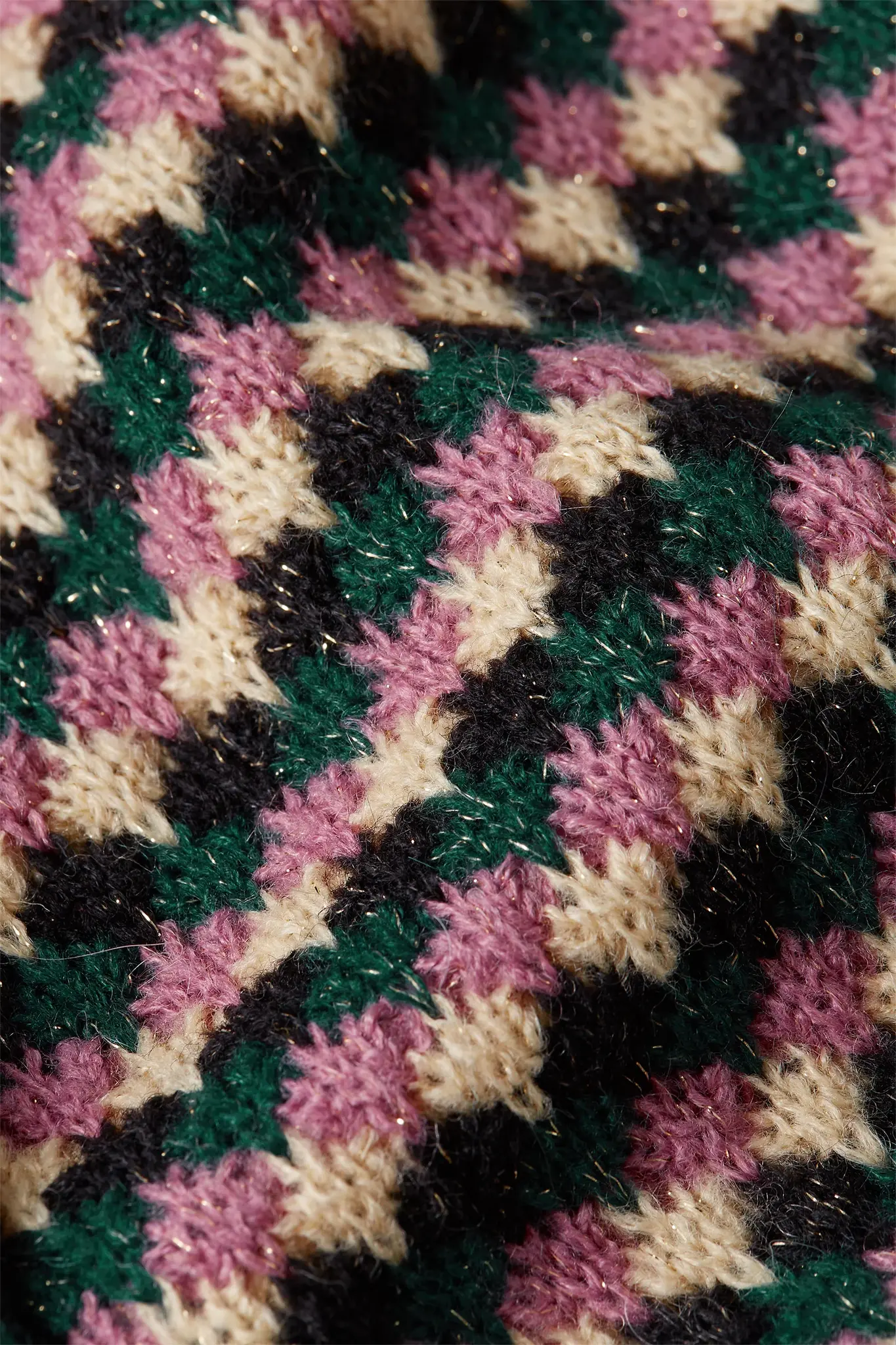 Gemaakt van een hoogwaardige mix van materialen – waaronder acryl, nylon, wol en mohair – voelt de trui zacht en warm aan, ideaal voor de koudere seizoenen. Of je nu een casual dagje hebt of een etentje waar je net iets meer wilt uitpakken, deze top is een veelzijdige keuze die altijd in de smaak valt.