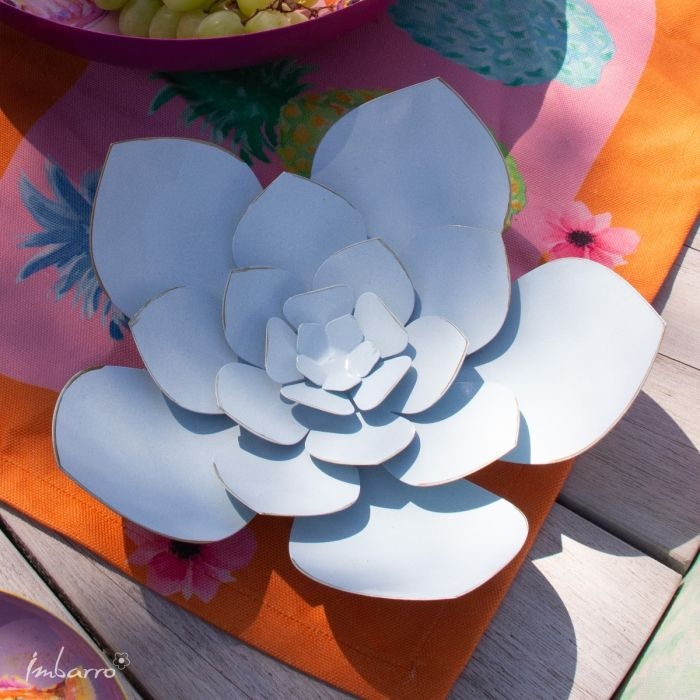 Deze bloem voelt licht en vriendelijk, zonder saai te worden. Bloem Silene van Imbarro is handgemaakt van metaal en laag voor laag opgebouwd, wat zorgt voor een mooie 3D-look met subtiele diepte. De zachtblauwe tint geeft rust en laat zich heel makkelijk combineren.