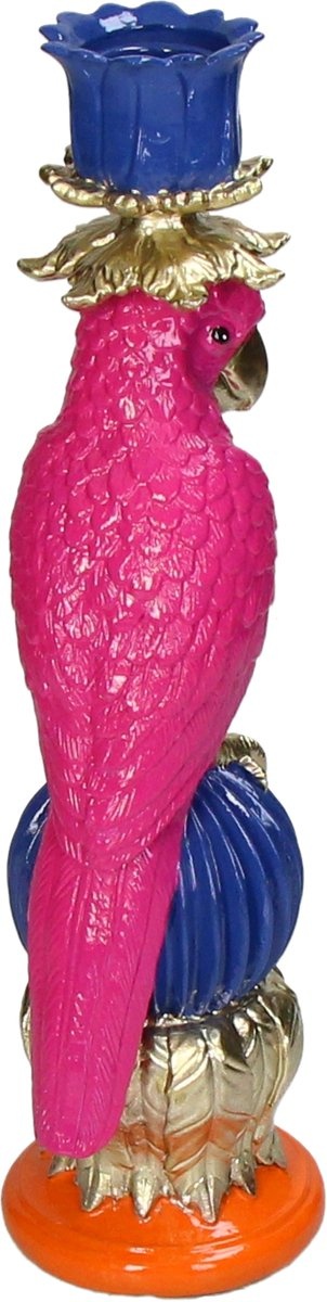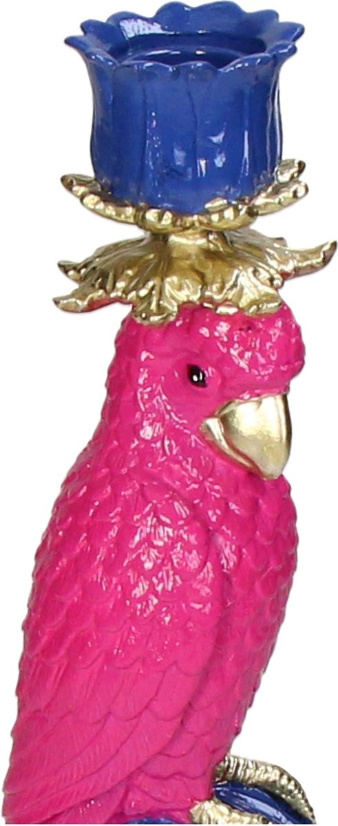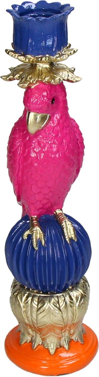 Sommige accessoires brengen meteen een glimlach — en deze Kandelaar Bird is er precies zo eentje. Een prachtige vogel van polyresin, vol kleur en charme. De combinatie van blauw, roze en oranje, met een subtiel vleugje goud, maakt hem nét een beetje luxe zonder dat het overdreven wordt. Als je van een levendig en warm interieur houdt, past deze kandelaar er moeiteloos tussen.