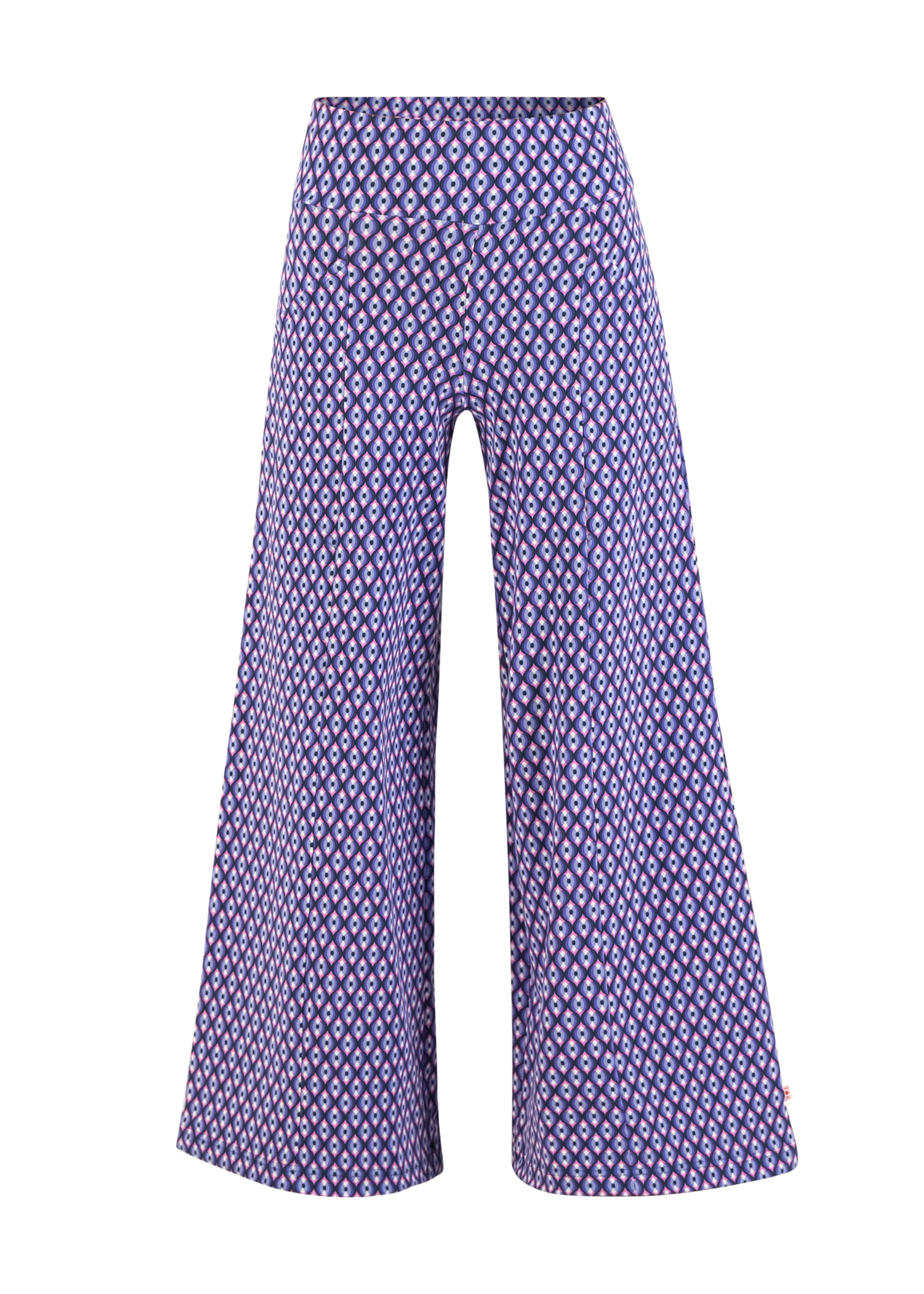 Heerlijke broek vam Blutsgeschwister met elastische tailleband wat voor een hoog draag comfort zorgt. Flared pijpen en steekzakken. In de pijpen zit ook een koord zodat je de pijpen ook samen kan trekken, handig met fietsen toch!