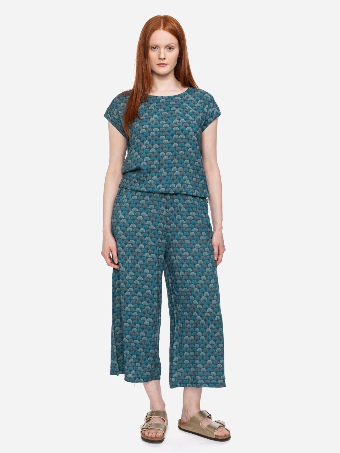 De Leo top van Ato Berlin in teal/petrol is fris, rustig en verrassend veelzijdig. Gemaakt van soepele LENZING™ ECOVERO™ viscose en heerlijk luchtig om te dragen. Een favoriet in de winkel – en dat snap je meteen als je haar aantrekt.