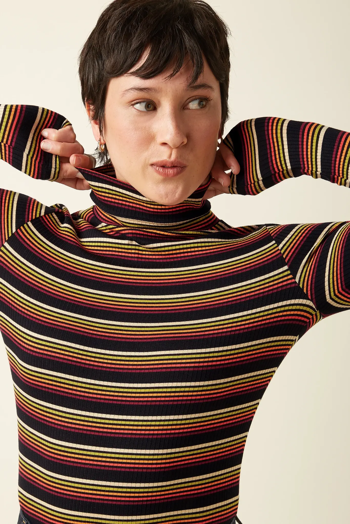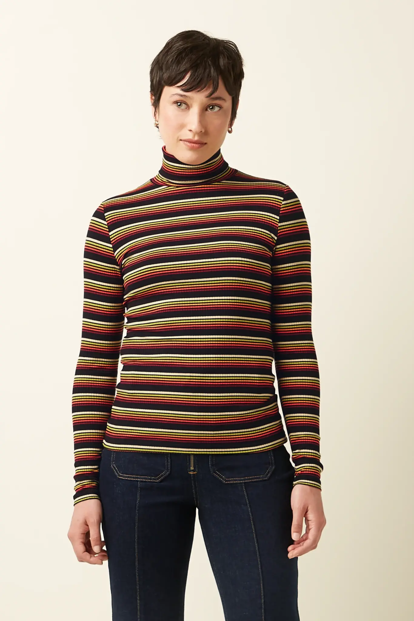 Deze top kun je het hele jaar door dragen: in de winter als laagje onder een vest of blazer, in de lente en herfst gewoon zo op een rok of jeans. Of je hem nu combineert met een klassieke denim of een zwierige midi rok, de Frostine Stripe voegt altijd net dat beetje pit toe aan je look.