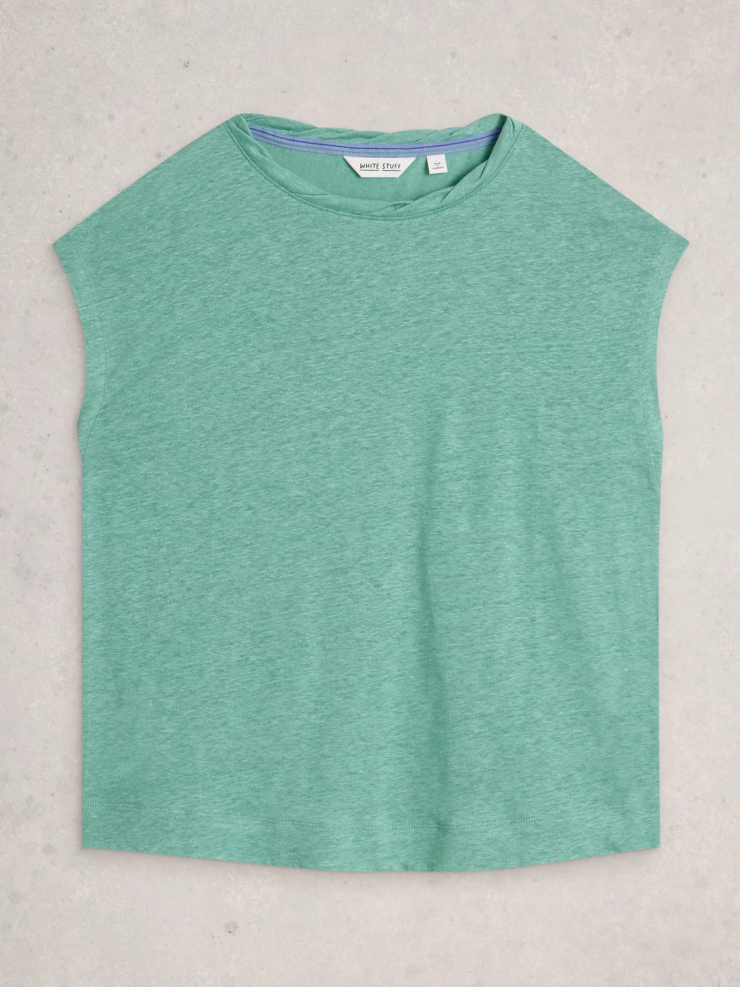 Dit is zo’n shirt dat je meteen wilt dragen zodra de zon zich laat zien… licht, luchtig en gewoon heel prettig op je huid. Dit mintgroene linen tee van White Stuff heeft die frisse, zachte kleur die meteen een zomers gevoel geeft.