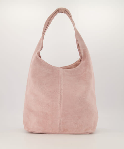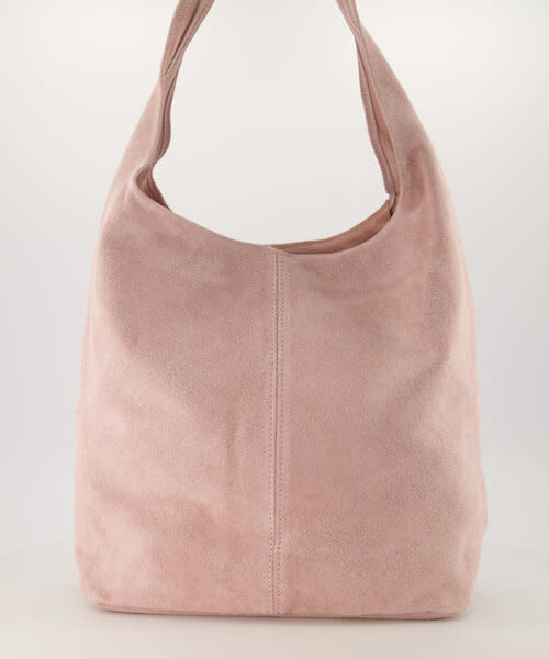 Suede schoudertas met 1 hoofdvak met ritssluiting. Afmeting: breed 35, hoog 32, diep 17. Deze tas heeft een zachtroze kleur mooi dit voorjaar en zomer!