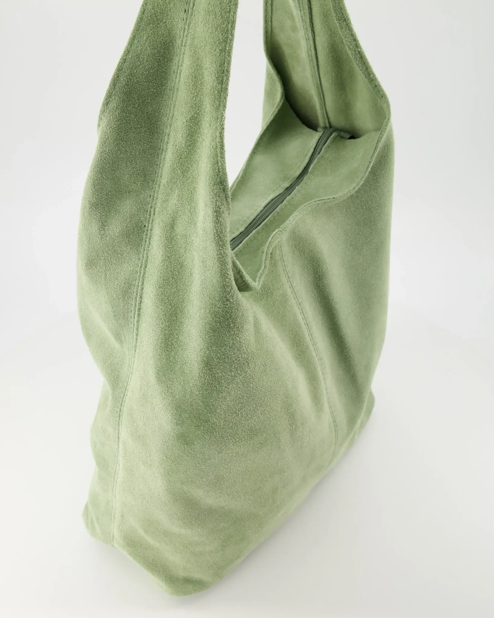 Suede schoudertas met 1 hoofdvak met ritssluiting. Afmeting: breed 35, hoog 32, diep 17. Deze tas heeft een frisgroene kleur mooi dit voorjaar en zomer!