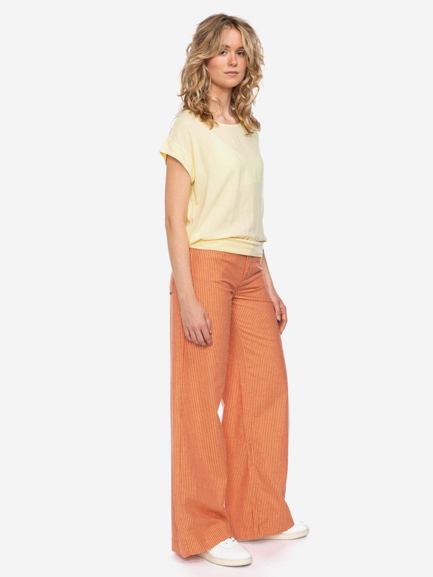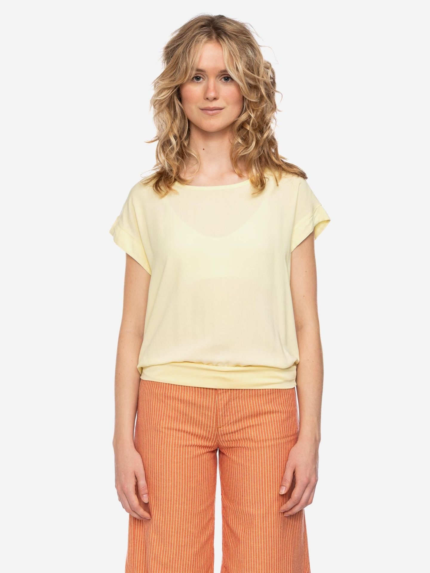 De Leo top van Ato Berlin in Vanilla is zacht, fris en makkelijk te combineren. Gemaakt van soepele LENZING™ ECOVERO™ viscose met een comfortabele, losse pasvorm. Een fijne basic met karakter.
