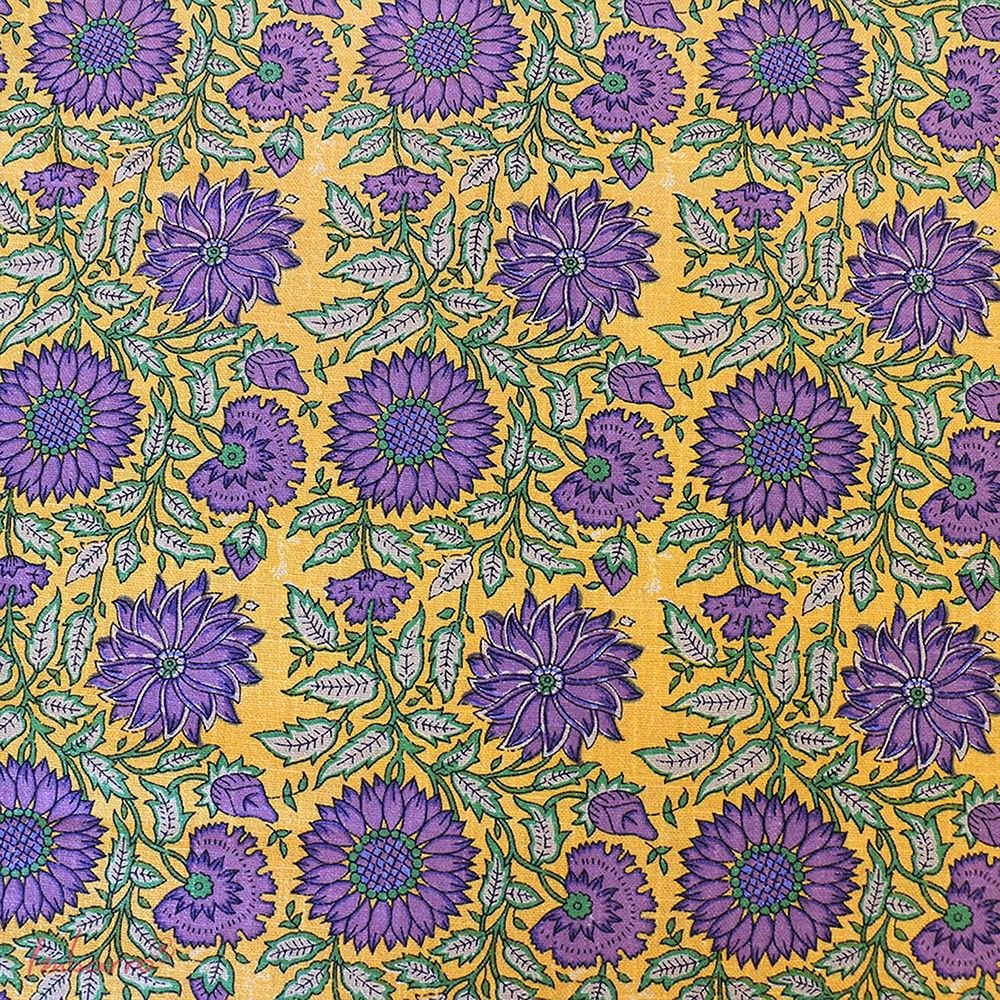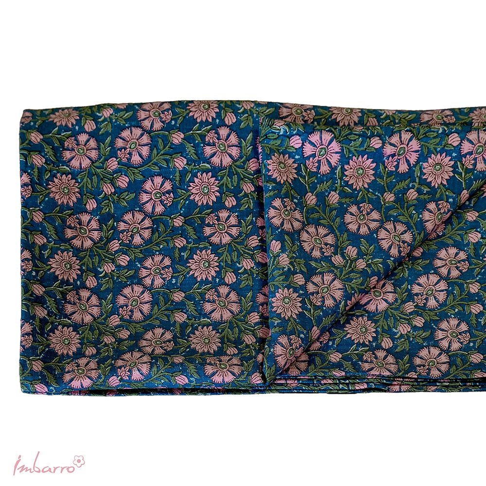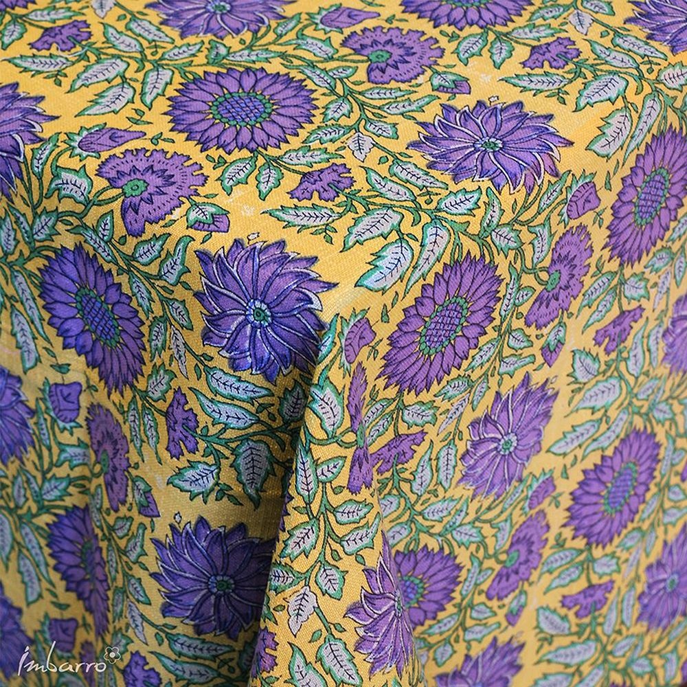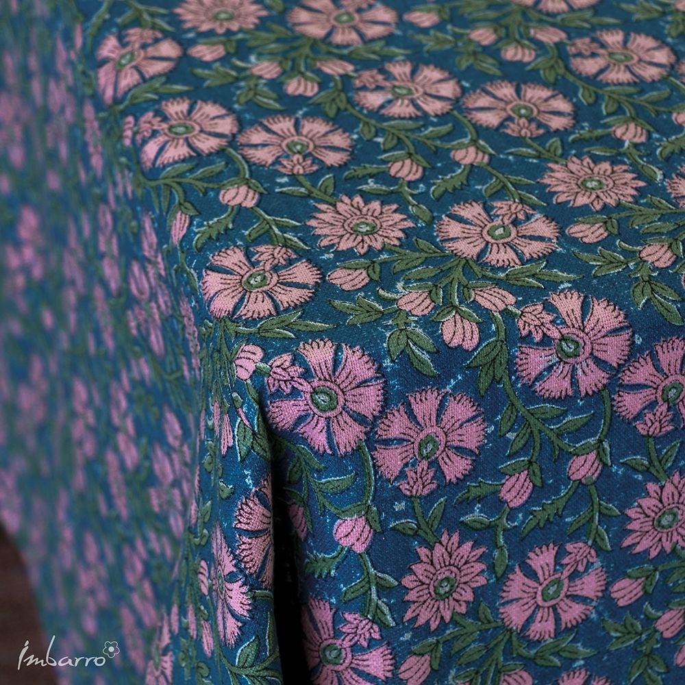 Tafelkleed van 100% katoen met vrolijk bloemenpatroon. Kies uit Noraly (geel met roze/groen) of Fayah (blauw met roze/groen). Groot, natuurlijk en sfeervol.
