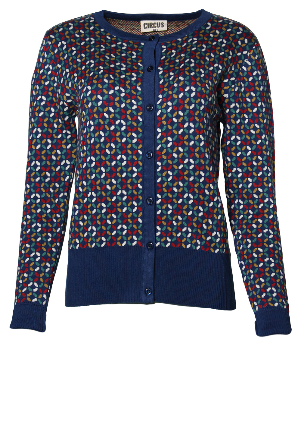 Het Roulade vest van Circus is een navy damesvest met kleurrijk breisel. Gemaakt van 100% organic cotton: ademend, zacht en duurzaam. Mooi te dragen open of dicht.