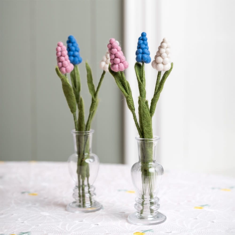 Zo leuk dit roze druifje, 25 cm lang gemaakt van wol vilt. Hier haal je duurzaam de lente mee in huis. Alleen op een vaasje of in combinatie met andere vilt bloemetjes. Daar word je blij van! Handgemaakt door vrouwen uit Nepal voor Sjaal met een Verhaal.
