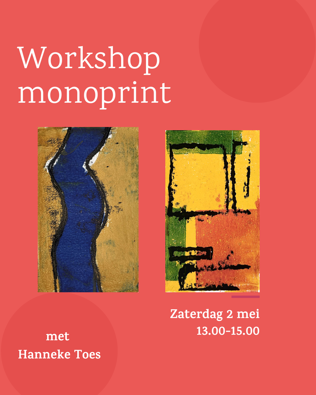 Workshop Monoprint 2 mei 13.00-15.00